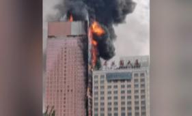 Un voraz incendio arrasa un rascacielos en el sur de China