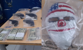 Entre las evidencias estaba una máscara de payaso con la que camuflaban su rostro al momento de cometer sus fechorías.