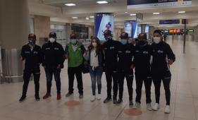 El vicecampeón de la Vuelta a España fue recibido con arco de agua y con la tricolor en la torre de control