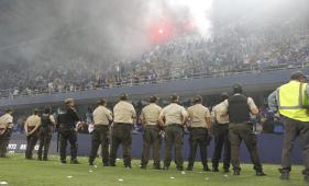 Por culpa de varios desadaptados solo se pudieron jugar 25 segundos en el Clásico del Astillero. El 19 de septiembre se terminará a puertas cerradas.