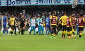Desde el inicio del cotejo, los hinchas y jugadores fueron protagonistas de incidentes por lo que el encuentro tuvo que ser pospuesto para el 19 de septiembre.