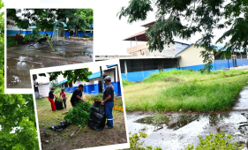 En planteles de Machala y Santa Elena, docentes y padres de familia hicieron mingas de limpieza