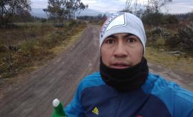 El maratonista se prepara sin la guía de un entrenador ni equipo de apoyo. Por falta de billete, no tiene ni para los zapatos