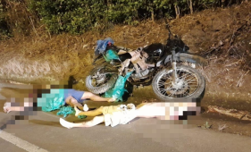 Los dos cuerpos, de sexo masculino, fueron hallados junto a una moto. Uno de ellos tenía un pedazo de cartón con un escrito donde se menciona a una organización delictiva.