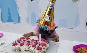 Guardería organiza cumpleaños para mascotas que incluyen un 'piscinazo'