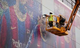 Imágenes que circulan en redes sociales muestran a unos trabajadores removiendo la imagen del astro argentino de un mural del emblemático estadio del Barcelona de España.