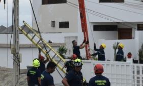 Un hombre quedó guindando en los cables dentro de una urbanización
