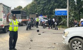Las víctimas se desplazaban en una motocicleta. Un volquete es el otro vehículo involucrado