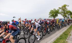 Richard Carapaz llegó con el pelotón principal y apunta a la primera etapa de montaña. Mathie Van der Poel mantiene la magial rosa.