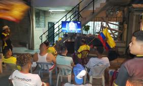 Los que no tenían señal de televisión se fueron donde los vecinos que sacaron su TV fuera de la casa para ver el partido