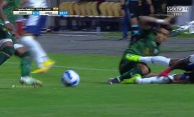 El zaguero de Emelec, Jackson Rodríguez sufrió una terrible lesión en su tobillo izquierdo, luego de ir a disputar un balón con Richard Calderón.