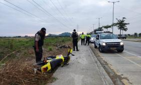A un par de metros de la víctima quedo una motocicleta. Agentes de la Comisión de Tránsito del Ecuador (CTE) fueron los primeros en llegar al sitio.