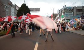 Seguidores de Barcelona fueron a Tababela y acompañaron durante gran parte del recorrido. Los albos se aglomeraron en el redondel de El Condado