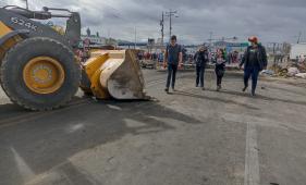 Paro Nacional: Con mingas y maquinarias limpiaron vías en Tungurahua
