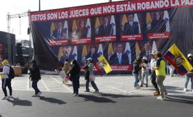 La AMC Quito retiró seis vallas que se instalaron durante la marcha convocada por Daniel Noboa y que iban en contra de la Corte Constitucional