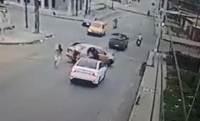 Cámara de seguridad captó el momento en que matan al uniformado. Sus tres verdugos descendieron de un auto dorado, sin placa