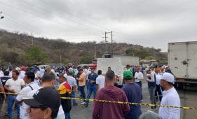 Manabí: Trabajadores de la Prefectura cierran vía Portoviejo - Montecristi por falta de pagos