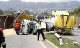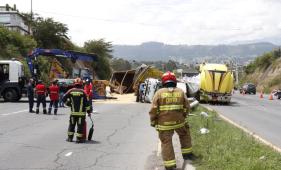 Un choque entre una volqueta y un bus escolar en la Ruta Viva dejó diez heridos y provocó el cierre parcial de la vía en Cumbayá