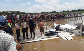 Una avioneta que cubría la ruta Lago Agrio–Guayaquil cayó sobre una poza de sembrío de arroz