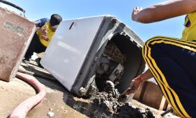 Aunque estaban aún con lodo, los pillos se llevaron los electrodomésticos recuperados de una familia en Santa Clara del Común, en Quito.