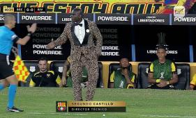 El entrenador del Ídolo volvió a cautivar miradas con su peculiar vestimenta en el estadio Monumental