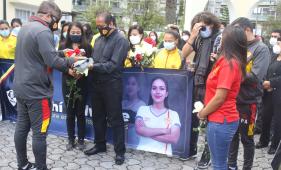 Las compañeras de la jugadora hicieron una calle de honor junto al féretro. Desde Aucas donaron la camiseta con la que jugó su último partido.