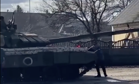 Conmovedor video de ucraniano intentado detener un tanque ruso