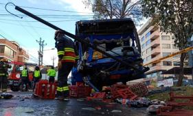 Un bus de transporte urbano y un tráiler se estrellaron en la avenida 6 de Diciembre y calle José Rafael Bustamante.
