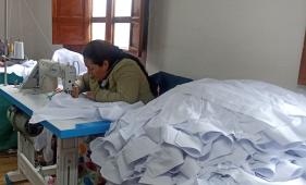 Debido a cortes de energía eléctrica, artesana extiende su jornada laboral para cumplir con la entrega de camisas