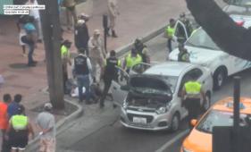 Detienen a dos sospechosos de un asalto a un transeúnte en el sector de Urdesa, norte de Guayaquil. Los sujetos 'camellaban' en un taxi amarillo.