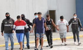 Los sospechosos amenazaban con bombardear localestambién entregaban panfletos donde exigían dinero. Se atribuían ser miembros de la organización criminal Los Tiguerones. Dos tienen antecedentes penales.