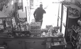 Al parecer, el hombre finge hablar por teléfono para distraer al dependiente mientras mete en un bolso los productos de la tienda.