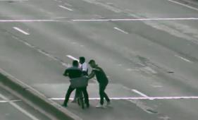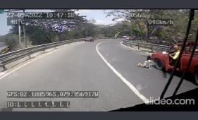 El hecho quedó captado por la cámara de otro vehículo. Quedó tendida en medio de dos carriles.