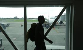 Un potrero cerca del aeropuerto de Cotopaxi es el escenario donde la gente despide a sus familiares que viajan a México. Un adiós con incertidumbre.
