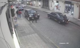 Vio cómo tres sospechosos se acercaron a una camioneta. La alarma sonó y él les corrió a bala. La hazaña fue grabada por una cámara de videovigilancia