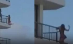 ¡Mujer cuelga del balcón de un edificio solo para tomarse una selfi!