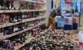 ¡Mujer rompe 500 botellas de trago en supermercado!